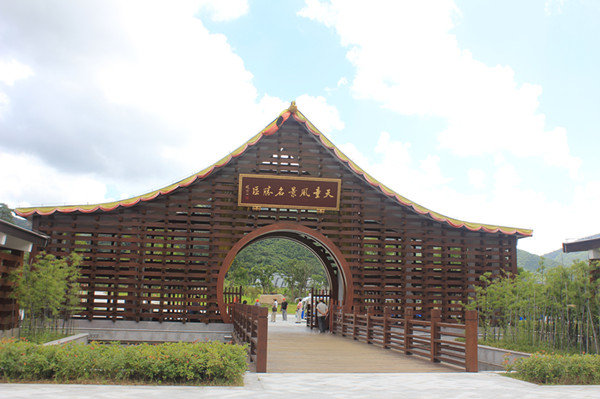 “天童寺風(fēng)景名勝區(qū)”牌樓由趙樸初先生題詞,趙先生曾任全國政協(xié)副主席,既是中國佛教協(xié)會會長,又是著名書法家。因此全國各地較為知名的佛教勝地,基本上都可看到他的書法題詞。牌樓前的池塘里,睡蓮象一個妙齡女子,在水面綻放著美麗的花朵。