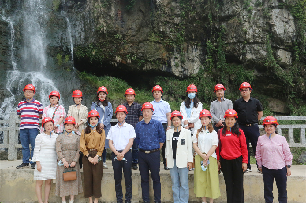 李海日(前排左4)、周曉明(前排左5)帶領青年盟員考察老采礦廠遺址