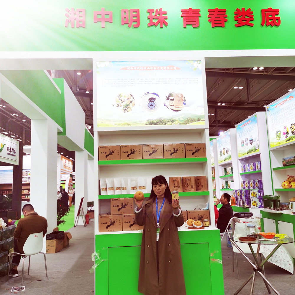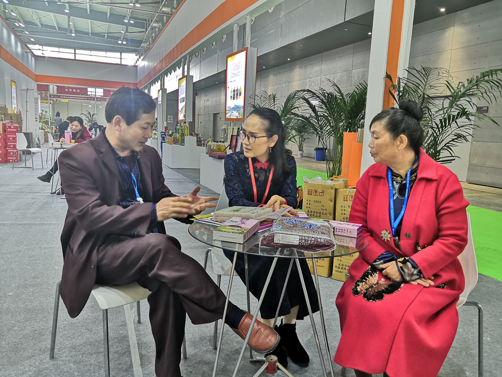 巡展期間,邵瑛與參展婁底商家進行了親切交談,了解商品展銷情況并為他們推薦產品。在盟員周殿波創辦的漣源市新綠農業科技有限公司展位,邵瑛了解到公司選擇生態環境良好的龍山山腳作為水稻種植基地,所產富硒大米、紫米品質優良、口感好,深受消費者喜愛。邵瑛對其充分發揮學術專業特長,長期扎根基層、潛心農業研究和開發表示贊賞。作為婁底民盟2019年重點調研課題《讓傳統文化綻放時代之花——婁底市非物質文化遺產的保護與傳承調研報告》重點研究、推介對象之一的湘軍水火席也走入了農博會。邵瑛現場品嘗,為其主打菜旗幟肉、合菜、酸辣小腸湯等菜品做宣傳、推介。冷水江泗元家庭農場的各類壇子菜、有機菜,李子灣農業有限公司的柚子及柚子加工產品,湖南威銘農業(牛山園)農業綜合開發有限公司生產的金秋梨、梨膏、梨干片,新化湖南昭博農林科技有限公司生產的桑葚主打系列產品、無花果主打系列產品等,都得到了邵瑛的關注。邵瑛就改進產品包裝、精準產品廣告、創立自主品牌、加大宣傳力度等方面與商家進行了深入探討和交流。她鼓勵大家,要發揚創新精神,引入科技團隊,對傳統農產品生產及深加工進行研發,提升農業質量效益和競爭力,為鄉村振興貢獻力量。