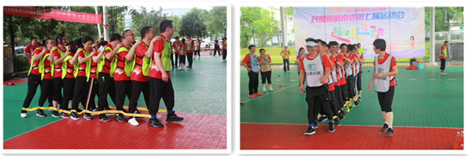 趣味運動會上,參賽運動員被分成8個組,先后進行了“智慧塔”“珠行千里”“巨人腳步”“動力繩圈”比賽,比賽過程緊張、激烈。大家你追我趕、齊心協力,賽場上洋溢著歡笑聲、吶喊聲。趣味運動會結束后,大家齊聲祝福中國共產黨、中國民主同盟生日快樂!齊聲歡呼:“中國共產黨萬歲!中國人民萬歲!”