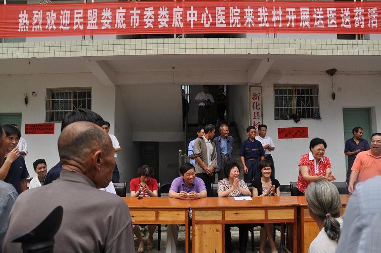 6月21日,民盟婁底市委到國家級貧困縣新化縣坐石鄉紅巖村開展送醫送藥下鄉活動。中共婁底市委常委、統戰部長肖新桃,婁底市政協副主席、民盟婁底市委主委邵瑛等領導出席啟動儀式并親切慰問醫療義診隊的醫生們。義診醫療隊由民盟婁底市中心醫院支部的10多名盟員專家組成。