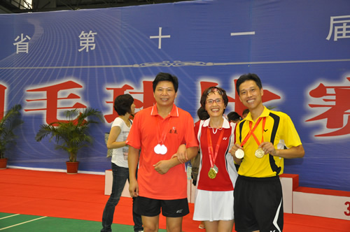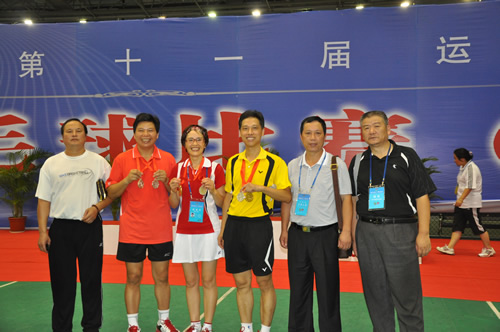 從左至右:邵瑛、肖新桃、彭愛華(中共益陽市委常委、組織部長) 獲得混雙亞軍的運動員組合 獲冠亞軍的3名婁底市廳級干部運動員 獲獎的婁底市運動員、教練員與領隊合影