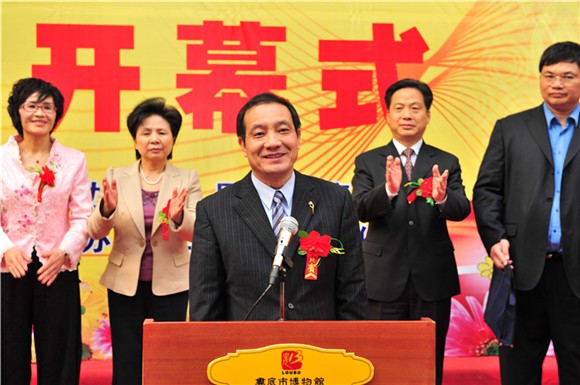 圖為民盟省委主委楊維剛宣布:“婁底盟員藝術作品展現在開幕”