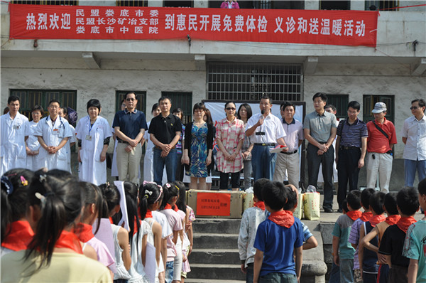 徐智充分肯定了婁底民盟長期以來,在發揮民盟優勢服務社會等各方面工作都取得了優異成績,多次受到民盟中央和民盟省委的表彰,并在紀念民盟成立70周年大會上受到先進集體表彰;她高度贊揚了民盟婁底市委與民盟長沙礦冶支部,傾情農村教育,響應民盟中央號召,聯合開展“燭光行動”支持農村教育發展的模式,及為促進教育均衡發展所付出的努力;今天又趕在六一兒童節之前,為孩子們送上新衣服,體現了民盟做好事做實事的優良傳統。