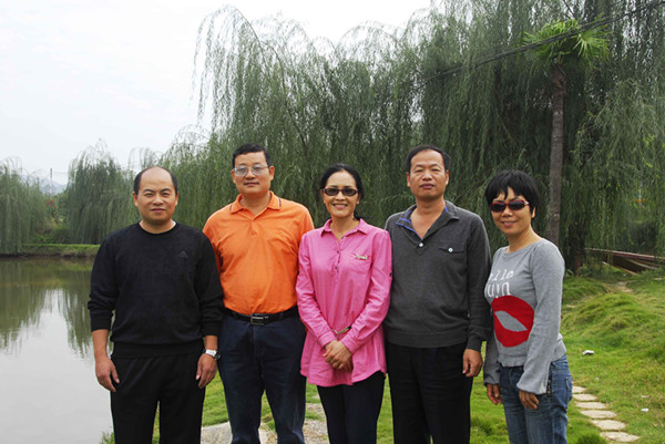 邵瑛(中)等在漣源調研期間和盟員合影