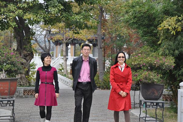 惠州學院彭永宏院長(中)陪同婁底市政協邵瑛副主席(右)一行考察惠州城市建設(張斐攝)