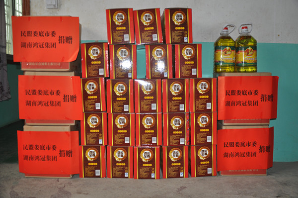 民盟婁底市委、鴻冠集團(tuán)贈(zèng)送的植物油及餅干