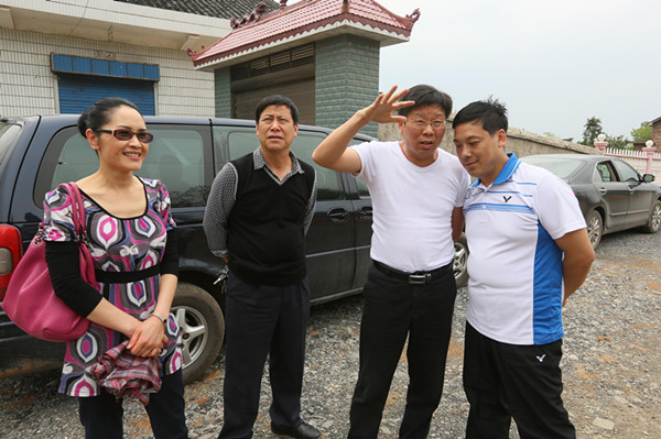 邵瑛(左1)陪同謝深喜(右2)在婁星區(qū)石井鎮(zhèn)調研果樹產(chǎn)業(yè)。郭國權攝影