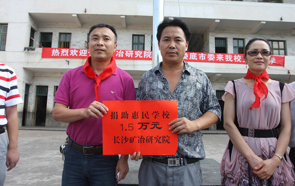 龔文勇代表長沙礦冶研究院黨盟代表團向惠民學校贈送1.5萬愛心款