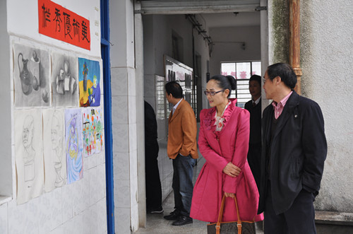 邵瑛(左)在凌會(huì)海(右)等陪同下欣賞校園文化建設(shè)