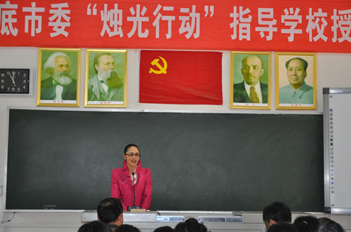 授牌儀式上,邵瑛作了重要講話。她代表民盟市委感謝婁底一中對(duì)婁底民盟“燭光行動(dòng)”的支持。近2年多來(lái),婁底一中十分支持婁底民盟“燭光行動(dòng)”,向民盟市委“燭光行動(dòng)”定點(diǎn)扶持的漣源斗笠山鎮(zhèn)惠民學(xué)校捐贈(zèng)課桌椅260多套,改善了惠民學(xué)校的教學(xué)條件。并通過(guò)各種方式免費(fèi)為惠民學(xué)校培訓(xùn)教師,促進(jìn)了惠民學(xué)校教育教學(xué)水平的提高。