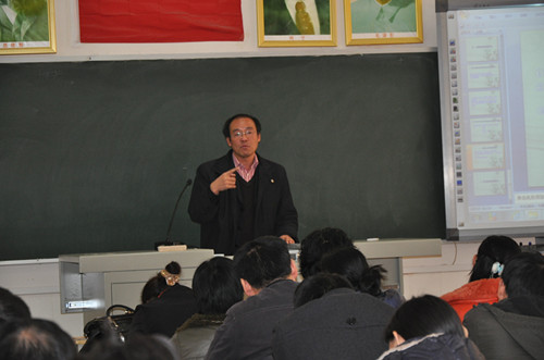 授牌儀式后,凌會(huì)海為來(lái)自民盟教育工作委員會(huì)的20多位盟員以及漣源市斗笠山鎮(zhèn)中學(xué)的50多位老師做了課改專題講座。
