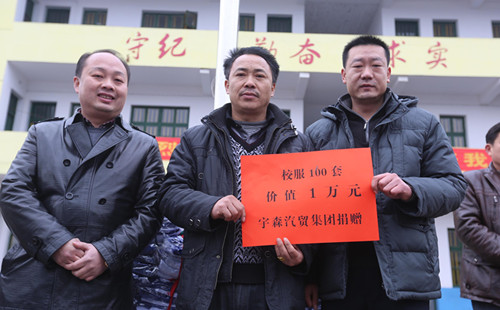 婁底宇森汽貿(mào)贈(zèng)送160套新校服給惠民學(xué)校的學(xué)生喜慶新年。