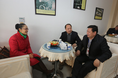 鄢福初(右)、邵瑛(左)和潘杰(中)親切交談