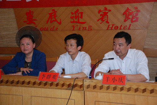 李群歡(中)、羊小慶(右)、王文成(左)等主席臺就坐