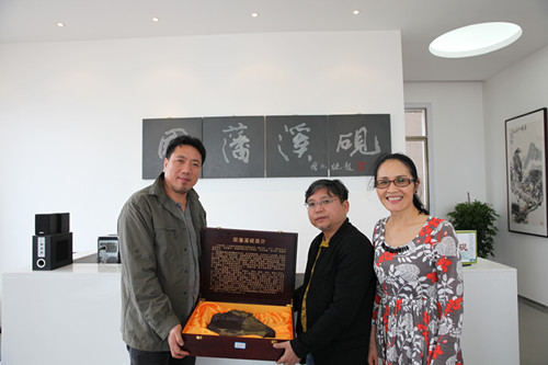 張伯序介紹了國內外文化產業發展的有關情況,從更高更深和更專業的角度分析了文化產業發展的現狀和未來,指出發展文化產業是一項很不容易的事,需要創造、創作、創業、創新。張伯序還結合國藩溪硯目前建設發展情況,指出在發展文化產業過程中存在的困難和問題,希望國藩溪硯公司團隊揚長避短,充分發揮溪石資源優勢和婁底民盟藝術人才資源優勢,將國藩溪硯做大做強,力爭將國藩溪硯做成全國第五大硯臺品牌。并希望今天省市盟組織多加強交流,共同為湖南的文化建設獻計出力。