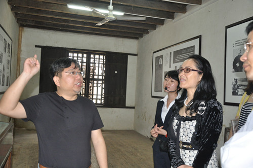 張伯序(左1)與邵瑛(右1)等在曾國藩故居考察時交流湘軍文化(王紅貴攝)