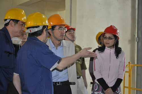邵瑛(右1)陪同卜鐵洪(右2)一行考察錫礦山砷堿回收利用項目
