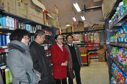 邵瑛(右2)等在鄉(xiāng)村驛站購物超市視察