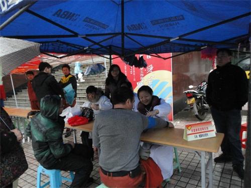 31清晨8點,民盟漣鋼支部的盟員不顧天氣寒冷,冒著朦朦細雨,到達漣鋼體育館門前,搭雨棚、支攤位,開始了緊張的義診活動。盟員醫務工作者為聞訊前來的市民們免費測血壓、測血糖、測血型,把脈開方,回答健康知識咨詢;非醫務工作者也沒閑著,幫忙維持秩序、發放健康知識資料等。大家在寒風中忙碌了3個多小時,為近200人提供了免費服務,給市民們送去了溫暖。