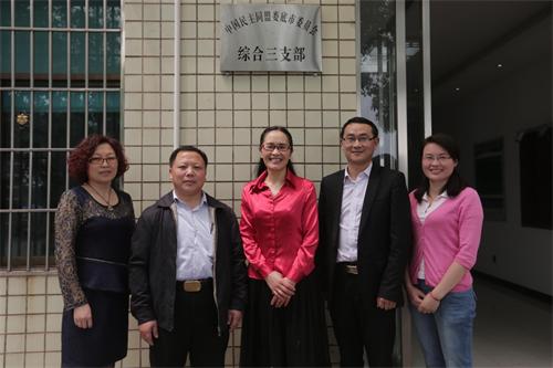 邵瑛(中)和支部班子成員劉德斌(右2)、陳波(左2)、陳紅(左1)、聶日紅(右1)合影