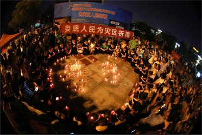 87晚,27名美麗端莊典雅的省運會禮儀形象大使手捧蠟燭,為在地震中遇難的同胞默哀,為災區人民祈福。該活動引發了婁底上千市民自發齊聚參與祈?;顒?。據悉,湖南省第12屆省運會、第9屆殘運會形象大使選拔賽由婁底民盟綜合二支部盟員李佳投資經營的,湖南新東方控股集團冠名,祈福活動由李佳組織。
