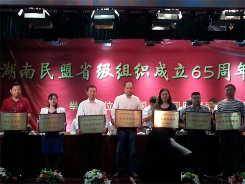 會上,龍莊偉副主席還代表民盟中央向全盟基層組織建設先進集體頒獎,民盟婁底市中心醫院支部獲頒“中國民主同盟基層組織建設先進基層組織”獎。