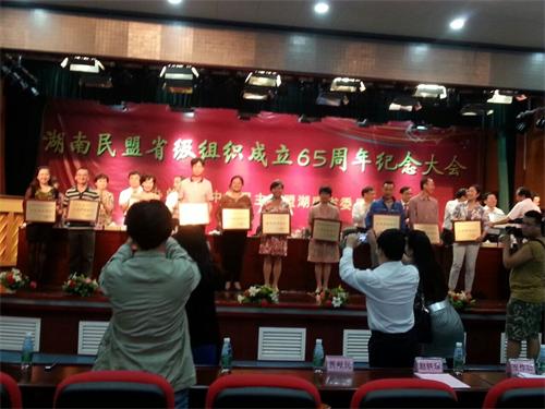大會對在湖南經濟社會發展中做出突出貢獻、在參政履職和本職工作方面成績突出的集體和個人進行了表彰。民盟婁底市委榮獲“先進地方組織”,民盟漣源市委、婁底市醫衛支部獲評“先進基層組織”,婁底盟員劉兆梅、劉德斌、肖春華、周巧紅、凌會海被評為“優秀盟員”,羊小慶、楊春華、曾芝紅被評為“優秀盟務工作者”