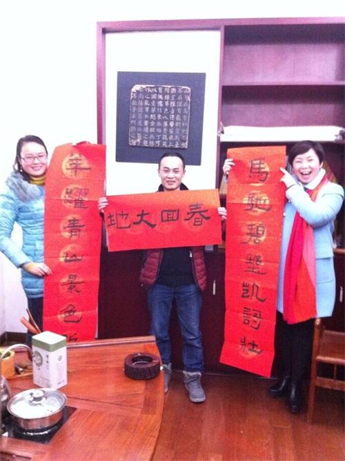 畫藝術家鋪墨揮毫,筆落處春聯出,紙起時祝福到,盟友們都得了墨寶,喜
