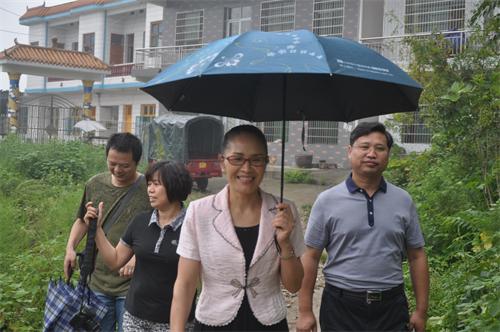 邵瑛(中)等在永豐鎮福壽村了解情況