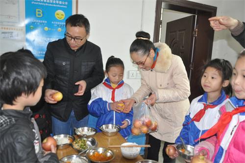 在新年即將到來之際,盟市委還給學(xué)校買了孩子們喜歡吃的豬肉、蘋果等食物,中午,邵瑛陪客人一行和全校師生在食堂共進午餐,惠民學(xué)校小小的食堂里充滿了濃濃的年味。餐間,賓主雙方愉快交談。邵瑛把民盟婁底市委送給孩子們的蘋果洗干凈與孩子們分享,希望孩子們在新的一年里平安健康快樂!