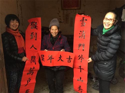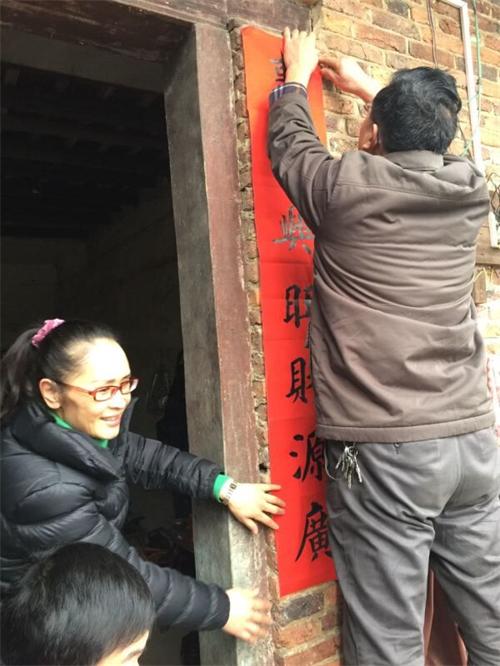 著名書法家、綜合三支部盟員鄔小明為兩位貧困戶家送上了春聯。邵瑛副主席親手幫忙貼春聯,貼好春聯的房子立刻喜氣盈盈。