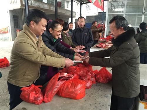 扶貧隊的盟員們一到謝老家,就幫著將宰割好的牛肉過秤裝袋。不到半天功夫,壹萬多元人民幣就到了謝老的手中。老人家笑得合不攏嘴,一個勁地說,感謝共產黨,感謝民盟,今年可以過一個熱鬧年了,他這個老五保戶也成富裕戶了。