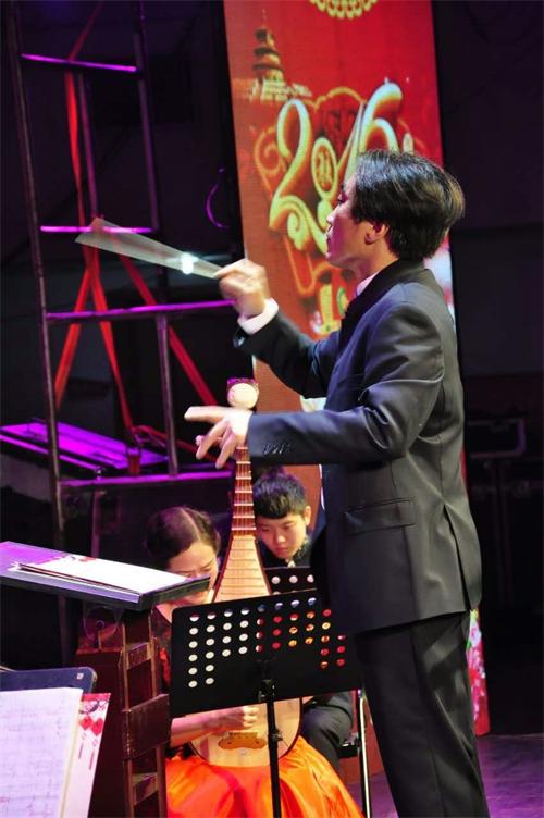 1月31日晚上,婁底市新春音樂會上,譚明哲老師身兼音樂總監、樂隊指揮、編配于一身,率領他創辦的婁底市新民樂藝術團,為駐婁解放軍指戰員、武警官兵、政法干警獻上了一臺高雅藝術的盛宴。
