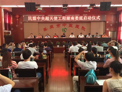 2016年8月16日,民盟中央“超天使工程”啟動儀式暨影像培訓(湖南站)在婁底市中醫醫院舉行。民盟中央社會服務部部長郭勇、中共婁底市委書記李薦國,民盟湖南省委專職副主委胡穎,中共婁底市委常委、組織部長、統戰部長華學健,民盟湖南省委副巡視員鄒衛,婁底市人民政府副市長甘躍華,婁底市政協副主席、民盟婁底市委主委邵瑛,中共婁底市委統戰部常務副部長王美成,婁底市衛計委黨組書記、主任羅琳等出席啟動儀式并在主席臺就坐。啟動儀式由邵瑛主持。