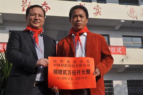 朱偉(左)為惠民學(xué)校捐贈(zèng)