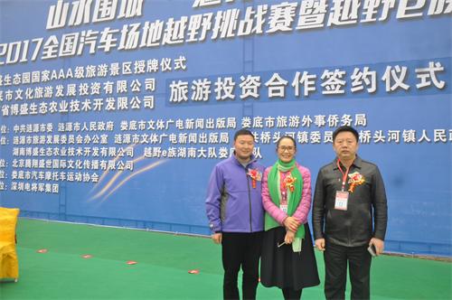 2017年 2月18日-19日,“山水圍城·魅力漣源”首屆“博盛杯”2017全國汽車場地越野挑戰賽,在湖南省婁底市漣源市橋頭河鎮國家級AAA旅游景區博盛山地越野主題公園舉行,婁底市政協副主席、民盟婁底市委主委邵瑛出席開幕式觀看比賽,并宣布閉幕。本次比賽由北京騰翔國際盛世文化傳播有限公司董事長,婁底市汽車摩托車協會會長、婁底市盟員蔣和武發起,漣源市委市政府、婁底市文體廣新局、婁底市旅游局等聯合主辦,漣源市旅發委、漣源市文體廣新局、橋頭河鎮政府、湖南博盛生態農業技術開發有限公司、越野e族婁底分隊承辦,北京騰翔國際盛世文化傳播有限公司支持,婁底市汽車摩托車協會協辦,深圳電將軍集團總冠名。賽道全程設有飛車臺、蛇形陣、炮彈坑、深水坑、駝峰等障礙物,采取同一賽道多車同發的比賽方式,是一條極富駕駛樂趣的賽道。來自湖南、重慶、湖北、安徽、廣西等15個省市的200多名國內車手參加專業組、公開組、量產組、巾幗組角逐。