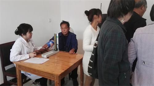 認真耐心地為該村48戶建檔立卡的貧困戶及部分村民免費做查血糖、測血壓、