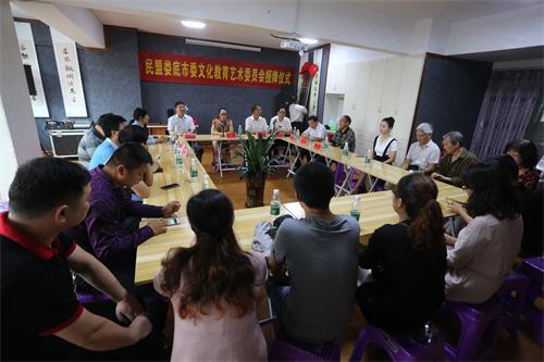 邵瑛向民盟婁底市委文化教育藝術委員會授牌。民盟婁底市委委員、文
