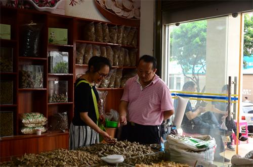 邵瑛(左)等聽熊朝康(右)介紹文山三七交易市場的建設