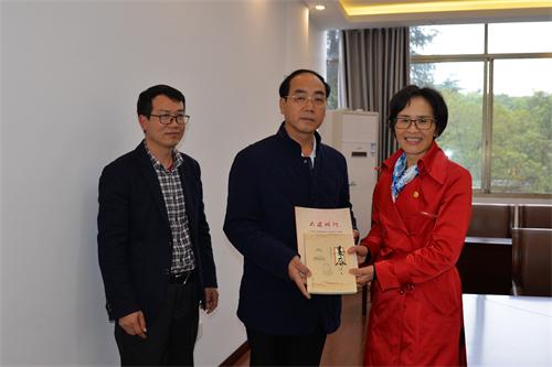邵瑛向趙為濟一行介紹了婁底民盟組織發展、隊伍建設、參與脫貧攻堅等有關工作情況,并向趙為濟贈送了《婁底讀本》和《大道同行》。