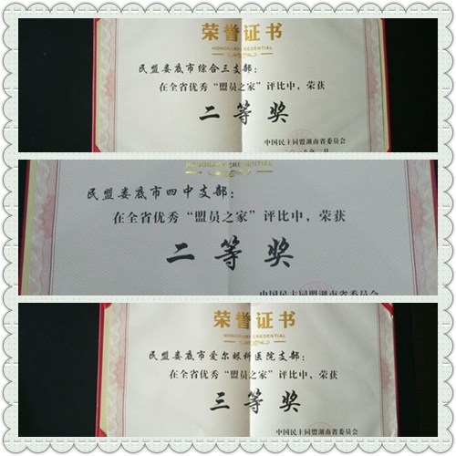 2017年,民盟湖南省委開展優秀“盟員之家”評比,全省336個基層組織(不含省直組織),共評選出19個優秀“盟員之家”,其中一等獎3個,二等獎6個,三等獎10個。民盟婁底市綜合三支部、民盟婁底四中支部分別榮獲二等獎,民盟婁底愛爾眼科醫院支部榮獲三等獎。