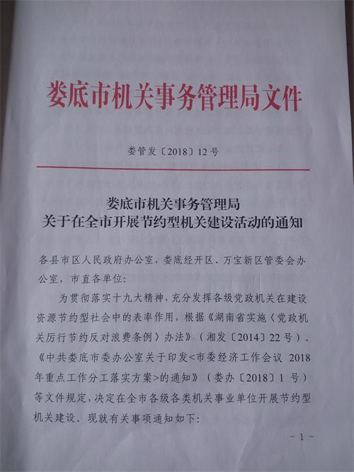 婁底市機關事務管理局關于在全市開展節約型機關建設活動的通知