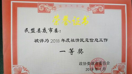 榮獲“婁底市政協2018年度社情民意信息工作先進單位一等獎”(唯一)。民盟市委統戰理論研究論文《<中國共產黨統