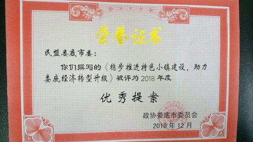 權分置”改革》,獲評“婁底市政協2018年度優秀調研報告二等獎”。民盟市委集體提案《穩步推進特色小鎮建設,助力