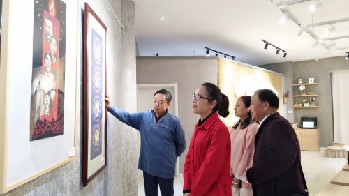 參觀盟員姜新明火烙剪紙作品