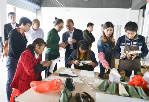 現狀和未來發展思路,并深入生產車間,詳細調研棕編鞋等產品的生產過程。得知吳方才的公司租賃古塘易地扶貧搬