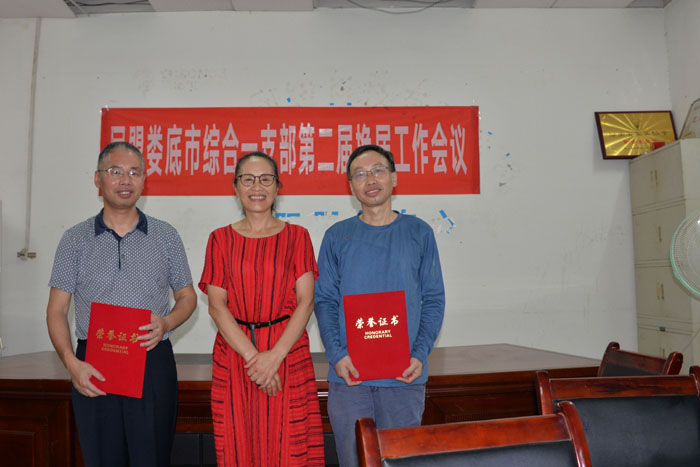 會上,邵瑛為綜合一支部盟員劉敏、劉兆梅頒發由民盟中央和省政協授予的2018年社情民意信息先進個人2018湖南省政協社情民意優秀稿件榮譽證書,并講話。她代表盟市委對綜合一支部五年來的工作給予了高度肯定,對新一屆支部委員和全體盟員提出三點希望與要求:一新一屆支委要精誠團結合作,甘于奉獻,互相學習幫助、配合補臺。盟的基層組織負責人,只有付出和奉獻,沒有待遇和利益,而且綜合一支部盟員分布范圍散,組織活動、開展工作不容易,沒有奉獻精神和民盟情懷是做不好支委工作的。支委成員在各方面都要率先垂范,團結帶領支部盟員,繼續努力前進。要加強學習,提高政治把握能力。要進一步加強學習時事政治和盟史盟章,堅定“四個自信”,樹牢“四個意識”,自覺做到“兩個維護”,繼續發揚民盟“奔走國是,關注民生”的優良傳統“立盟為公、參政為民”的民盟精神,不忘合作初心,繼續攜手前進。三立足本職多做貢獻。盟員要熱愛本職工作,以單位為家,加強業務學習,成為行家里手,在本職工作崗位上爭先創優,實現各美其美,美美與共。四是要組織開展高質量的支部活動。盟員們要全力配合支委工作,盡可能的參加支部活動,大家要齊心協力。要充分調動支部全體盟員參政議政積極性,發揚行政機關盟員多、領導干部多、政協委員多的優勢,多開展調研考察、專題討論協商等參政議政工作方面的活動,通過組織活動不斷尋找參政議政、社情民意信息撰寫、民主監督等工作的突破點和著力點,不斷提高盟員履行參政黨職能的能力和水平
