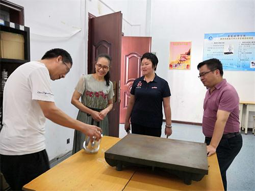 座談會后,周新輝陪同邵瑛一行考察了該院的技能培訓基地與實訓基地,實地感受學院辦學特色與模式,重點察看了以盟員謝學民老師名字命名的謝學民技能大師工作室。對學院辦學模式給予高度評價,對謝學民老師為學校為民盟贏得榮譽表示祝賀,對放棄暑期休息,堅持在校集訓的學生給予了鼓勵