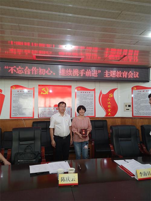 會上,陳慶云為離休盟員梁兆龍(1926年9月-2019年7月)親屬頒發了中共中央、國務院、中央軍委授予的“慶祝中華人民共和國成立70周年紀念章”。